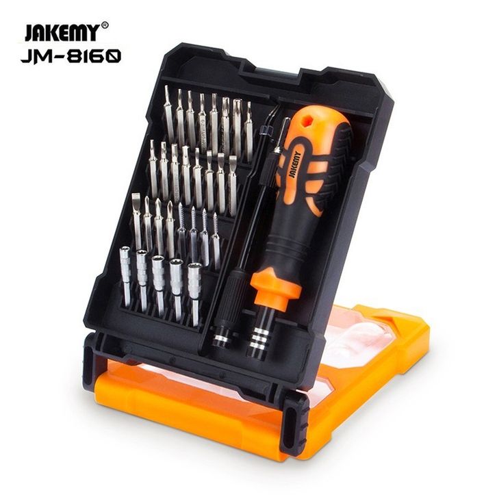 Screwdriver tool set jakemy 33in1 diy electronic with pinset tweezer for hp laptop vga pc cpu tv jm-8160 - Obeng teknis