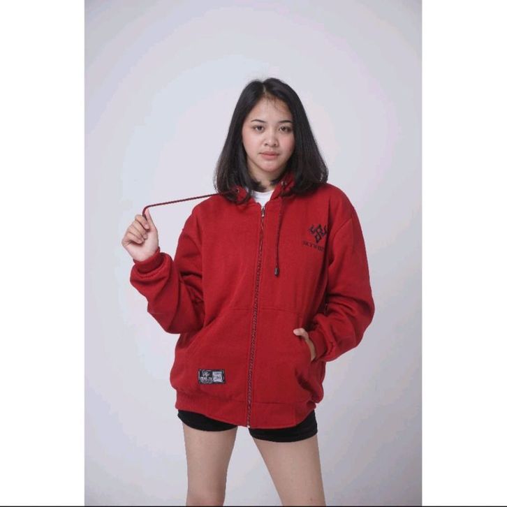 Hoodie Zipper Wanita Pria Sweater Skywhite Bordir Timbul Bahan Gramasi 280 Halus Dan Tebal