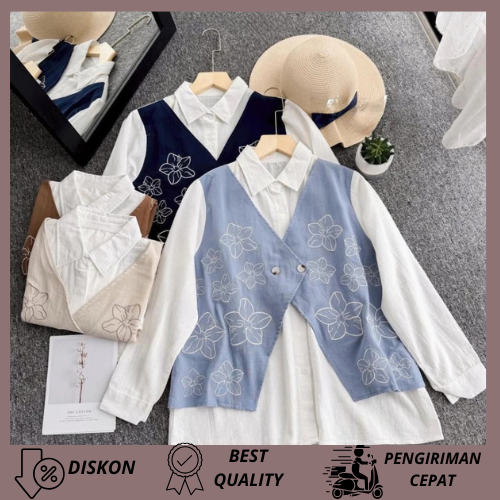 MADONA BLOUSE BORDIR BUNGA VARIASI VEST KANCING WANITA Atasan wanita korea murah Blouse korean style terbaru