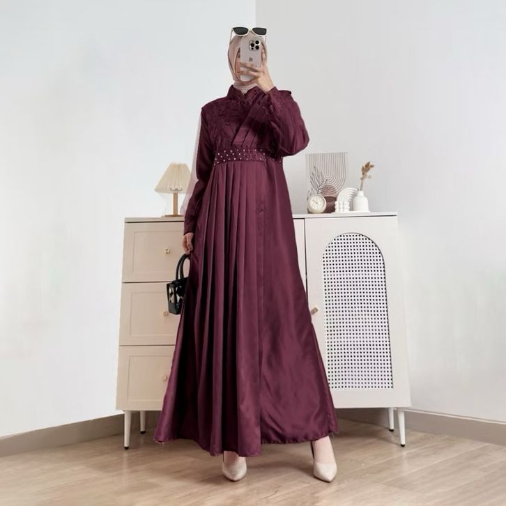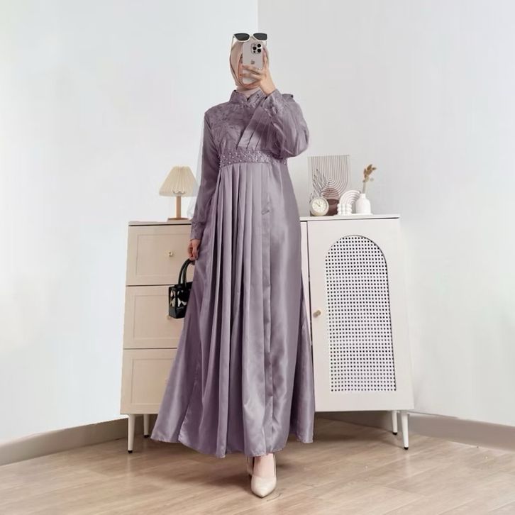 Baju Gamis Elegan Syakila Devarina Brukat Tille Bordir Cocok untuk Acara Spesial
