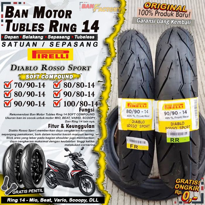 Sepasang Ban Motor Tubles Beat Pirelli Diablo Rosso Sport Ring 14 Ban Motor Depan Belakang Beat Vario Scoopy Ring 14