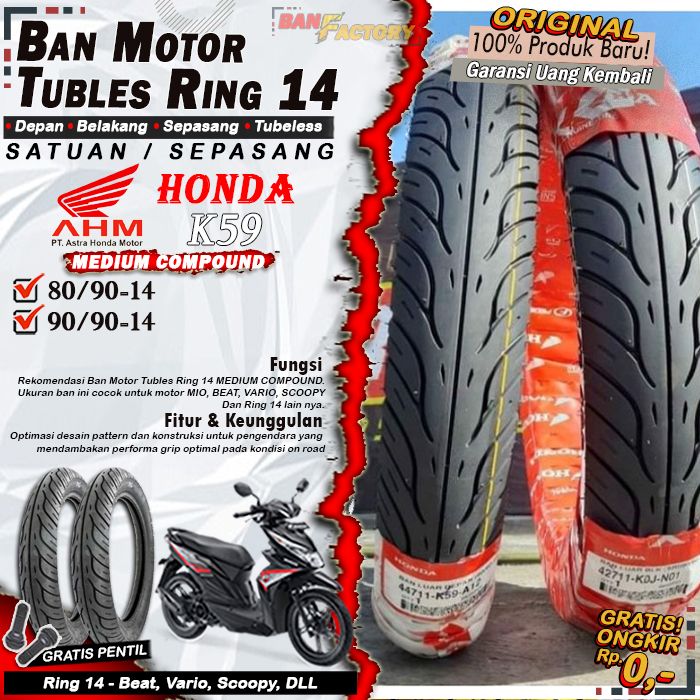 Sepasang Ban Motor Tubles Beat HONDA FEDERAL AHM K59 Ring 14 Ban Motor Tubeless Depan Belakang Beat Vario Scoopy Ring 14