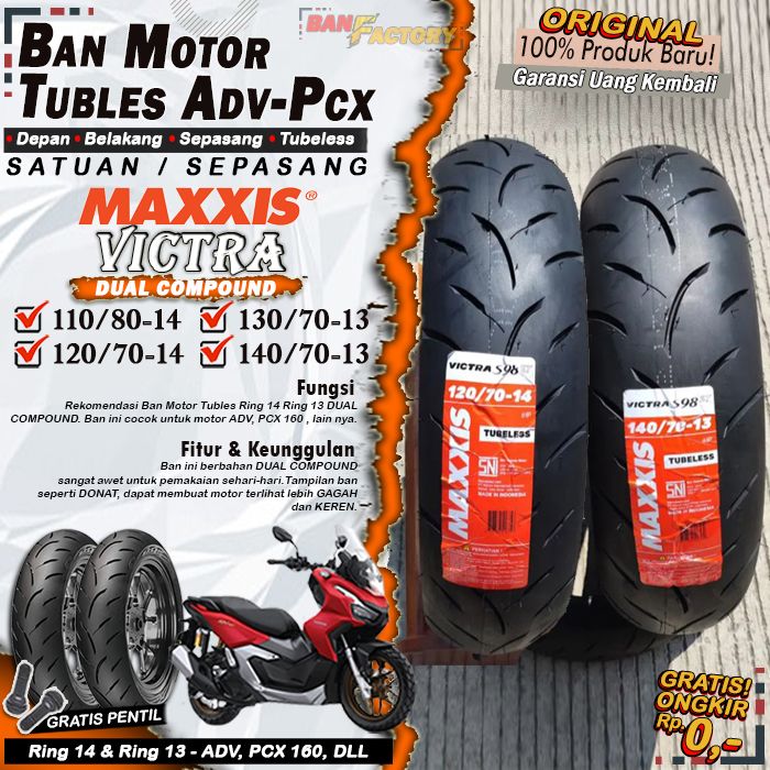 Sepasang Ban Motor Tubles ADV PCX 160 MAXXIS VICTRA Ring 14 Ring 13 Ban Motor Depan Belakang ADV PCX Ring 14