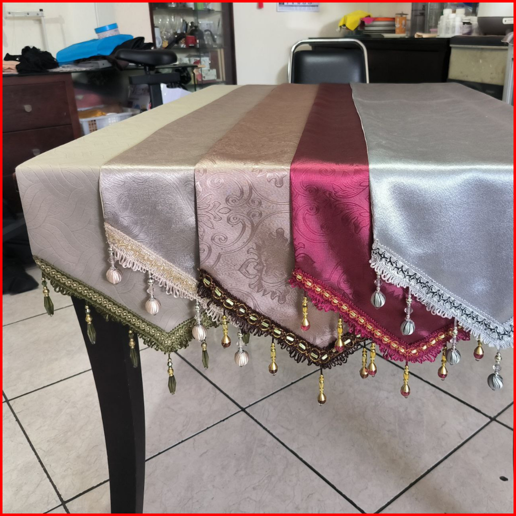 Taplak Meja Aesthetic Estetik Untuk Meja Tamu Meja Makan 4 Kursi Silver Mocha Sage Green Red