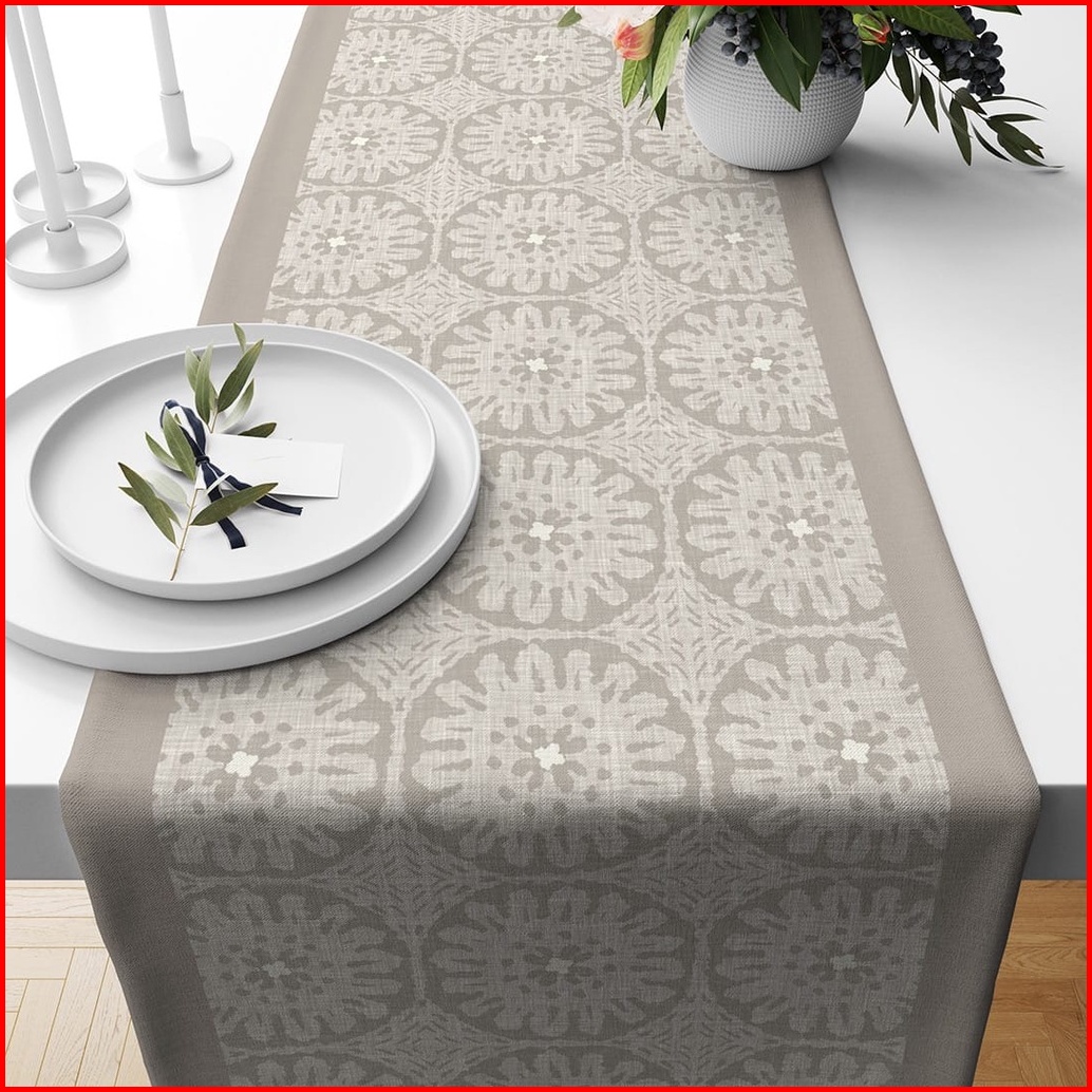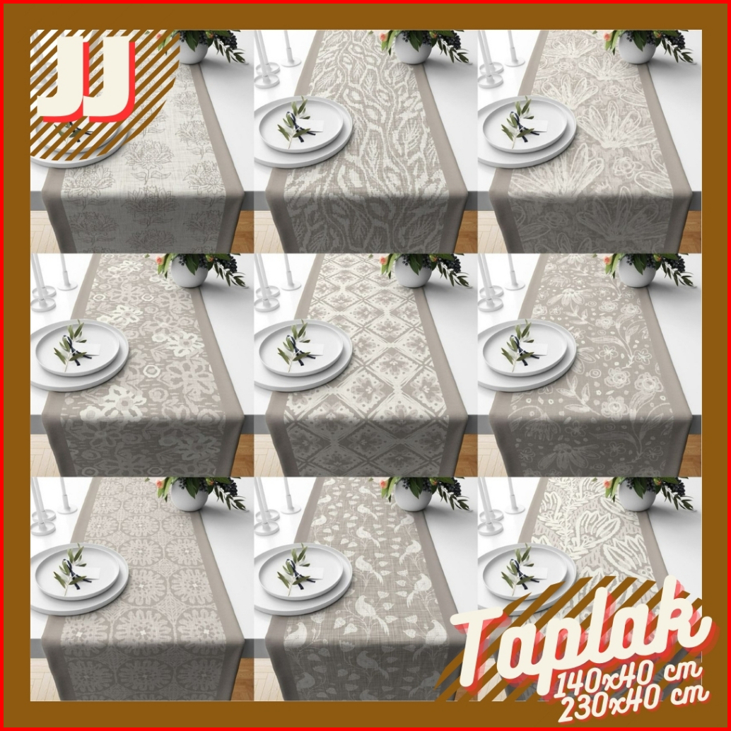 Table Runner Taplak Meja Print Motif Abstrak Denim Taupe Series 140x40 Dan 230x40 Cm