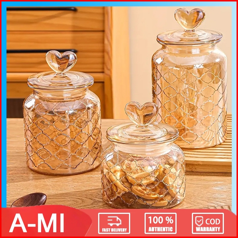 Toples Kaca Kedap Udara Toples Kue Kaca Toples Lebaran Toples Tertutup Kaca Toples Penyimpanan Cinta 650ml 950ml 1350ml