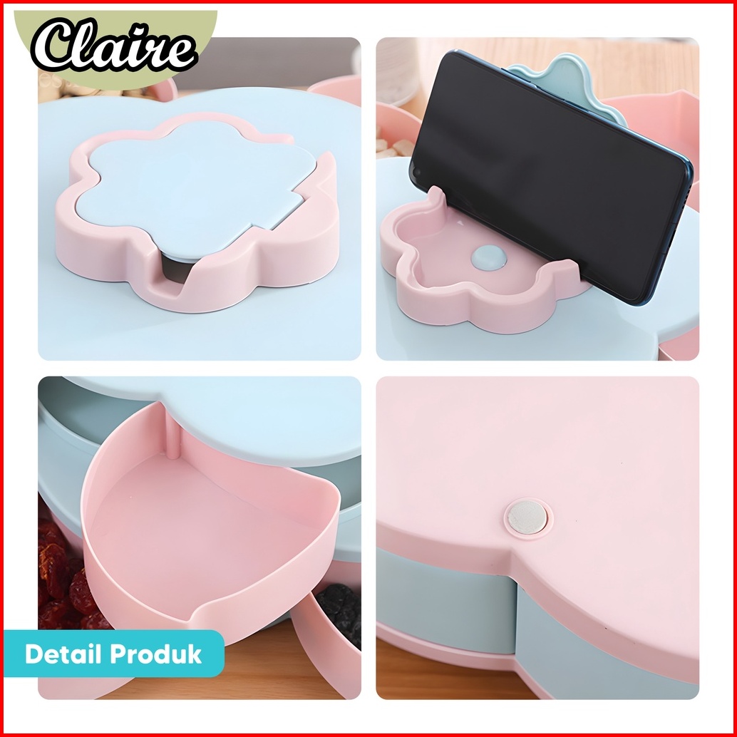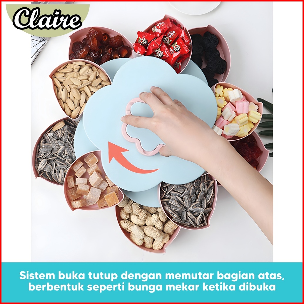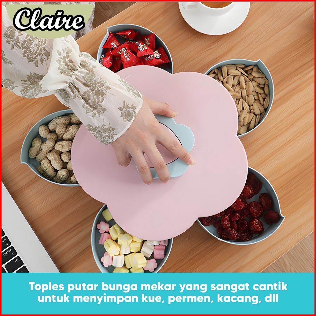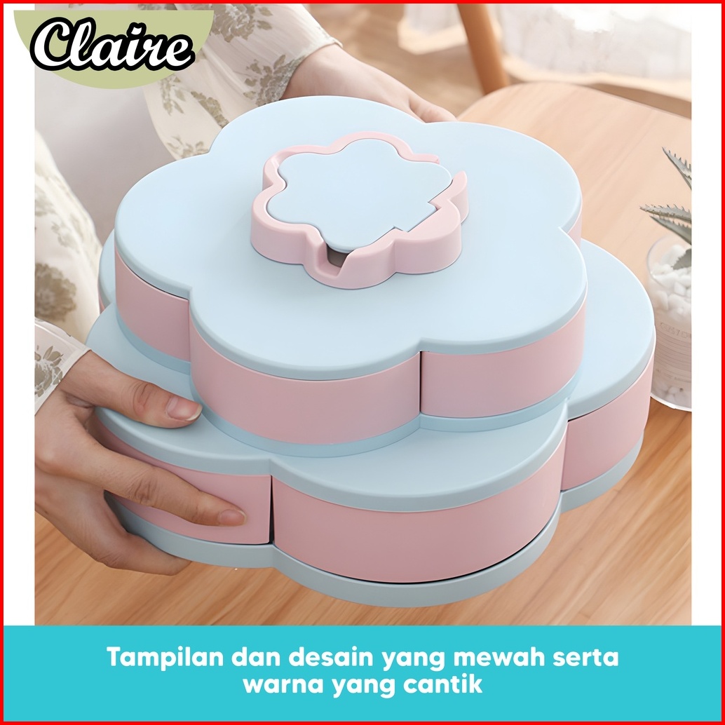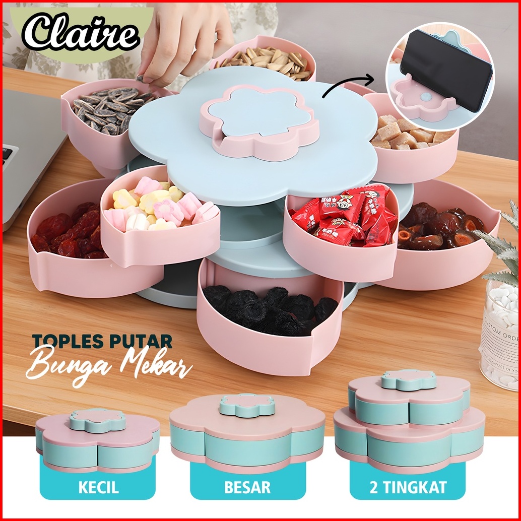 Toples Putar Bunga Mekar Flowers Candy Box Toples Putar Kue Snack 2 Tingkat Toples Lebaran