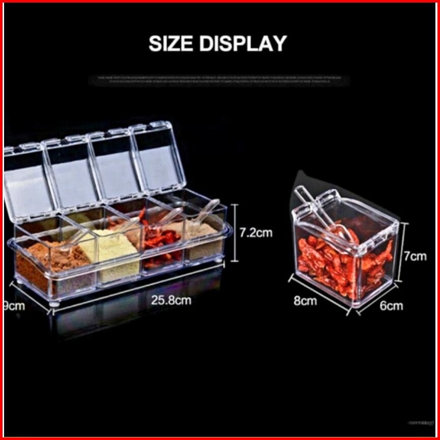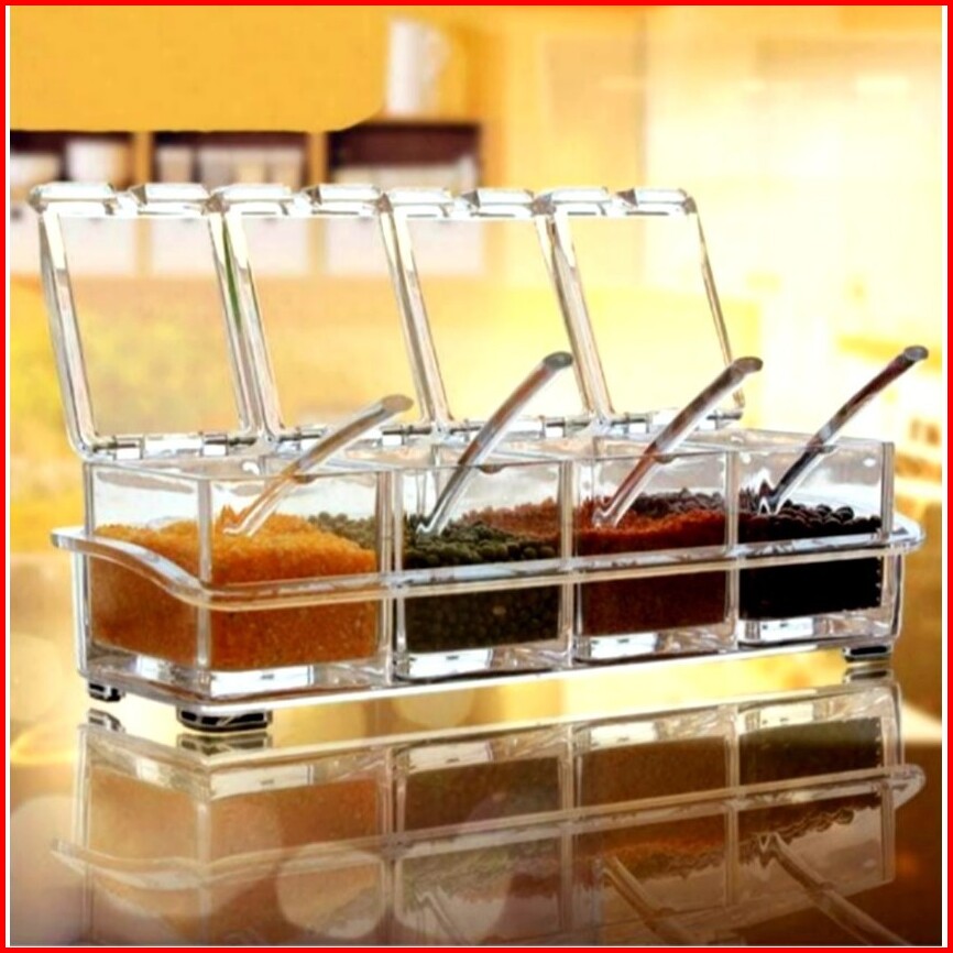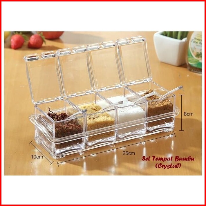 Tempat Bumbu Dapur Set Kotak Wadah Aneka 4 Pcs Transparan Tb002