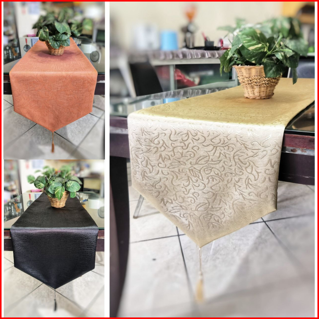 Taplak Meja Tamu Meja Makan Table Runner Kain Polos Emboss 2 Lapis Untuk Dekorasi