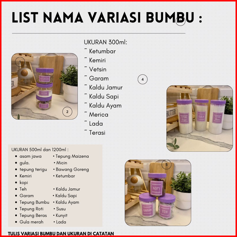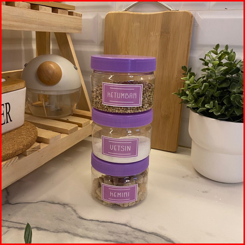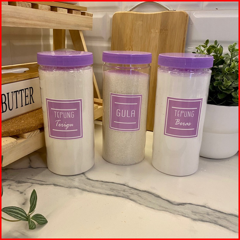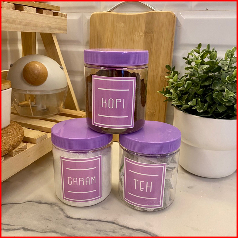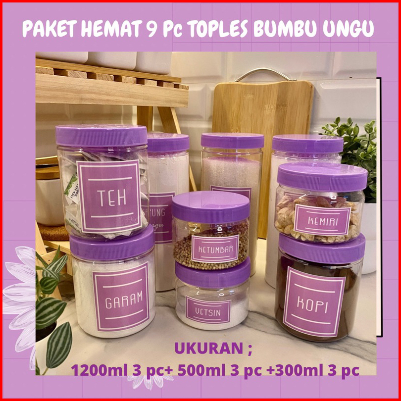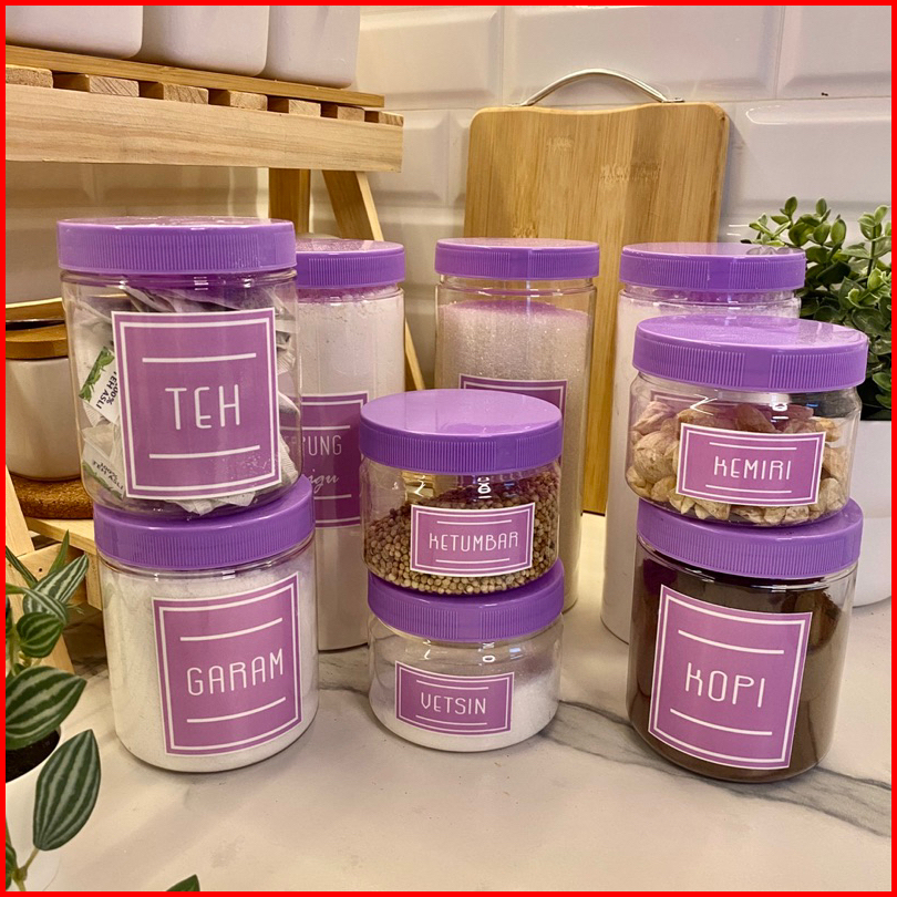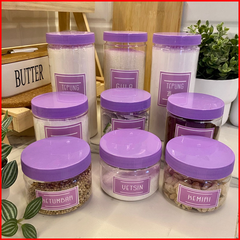 Paket Hemat 9pc Toples Bumbu Dapur Tutup Ungu Pastel Free Stiker Vinyl
