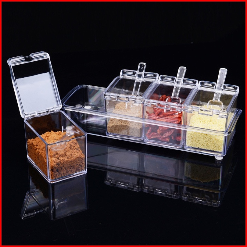 Zencontainer Bumbu Dapur Set Tempat Garam Acrylic Gula Merica Mecin Micin Bumbu Dapur