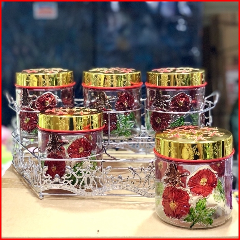 Toples Kaca Set Isi 5 Pcs Rak Toples Set Toples Lebaran