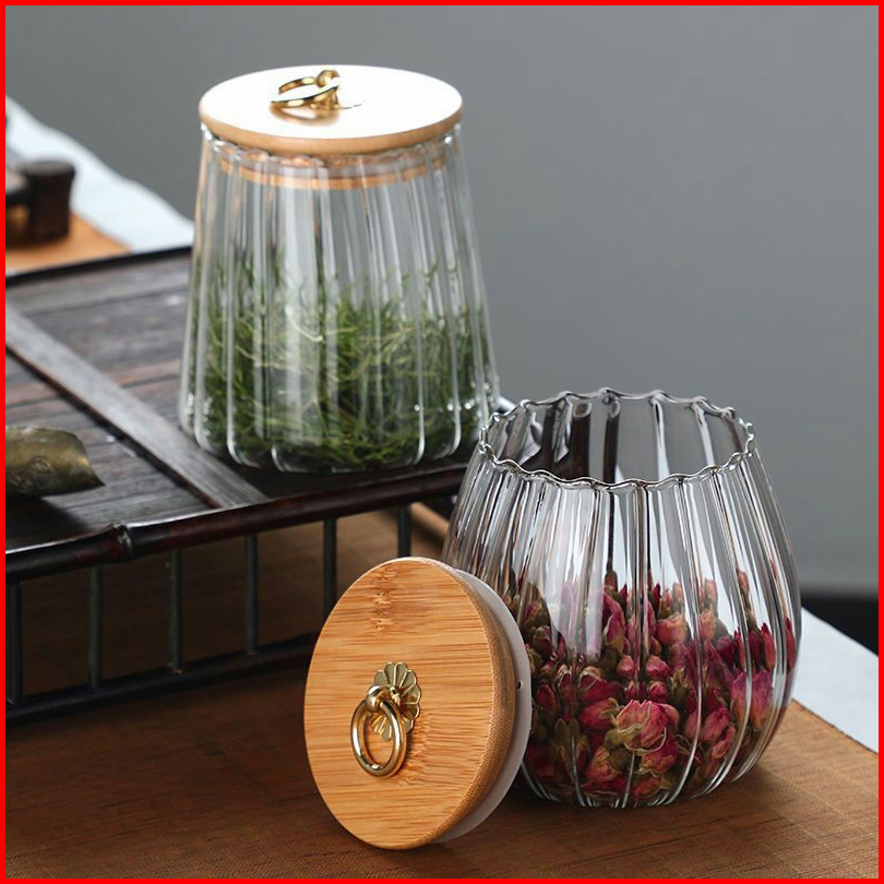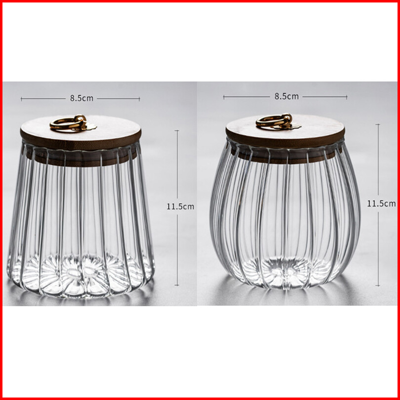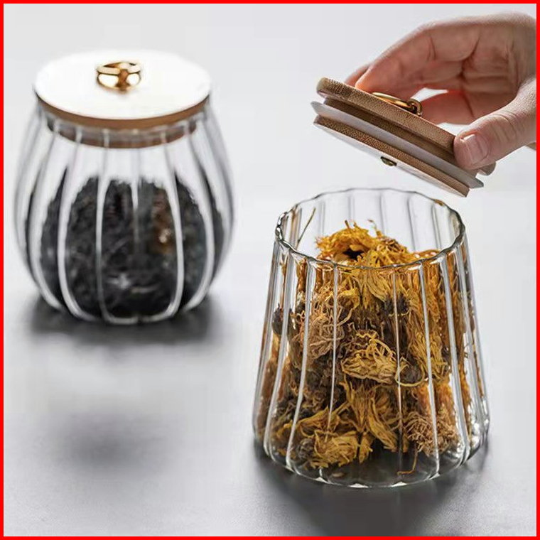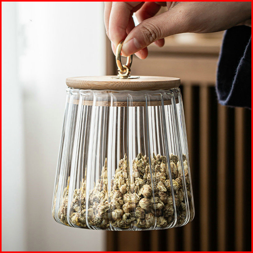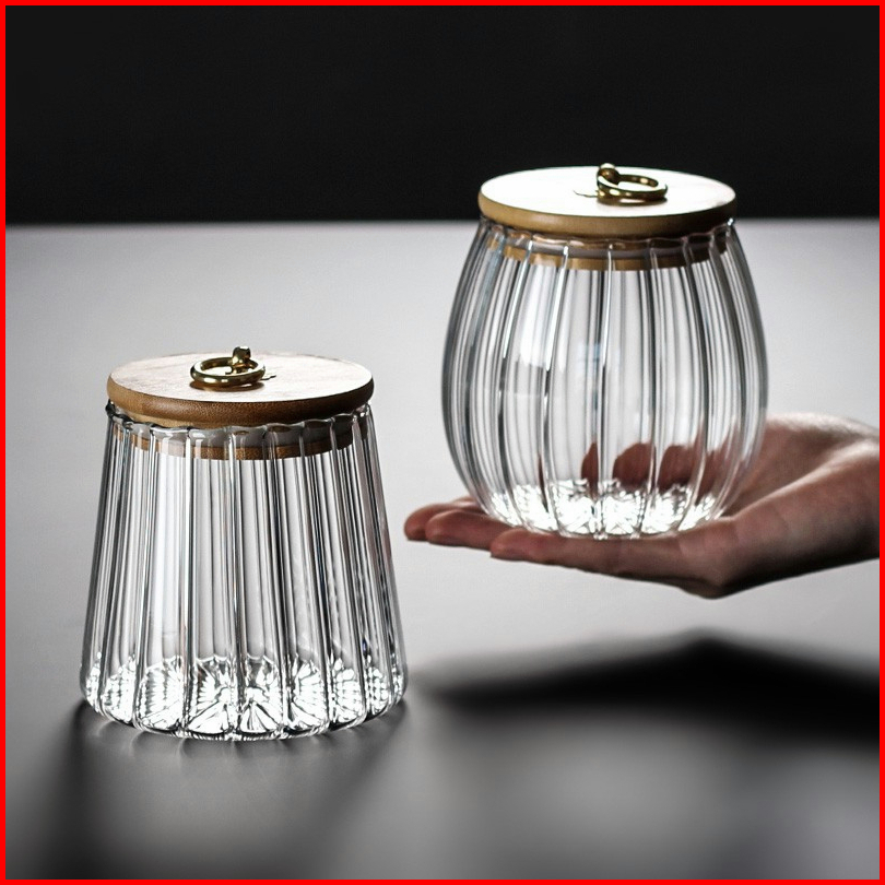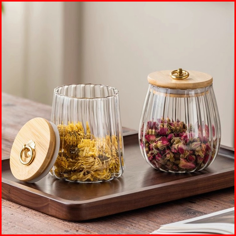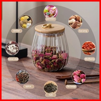 Wadah Penyimpanan Kedap Udara Untuk Kaleng Bergaris Kaca Dengan Tutup Kue Sereal Bumbu Kopi Dan Teh
