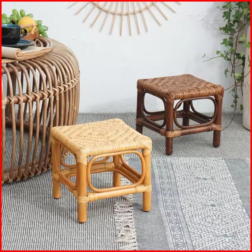 Kursi Bangku Duduk Rotan Alami Kotak Dingklik Kursi Kecil