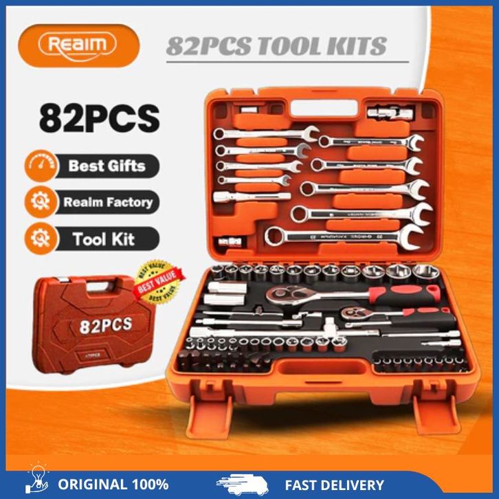 [Star] Reaim Set Alat 82 Pcs - Set Kunci Pas Anti Guncangan, Kunci Sok, dan Obeng untuk Mobil, Termasuk Kunci Torsi dan