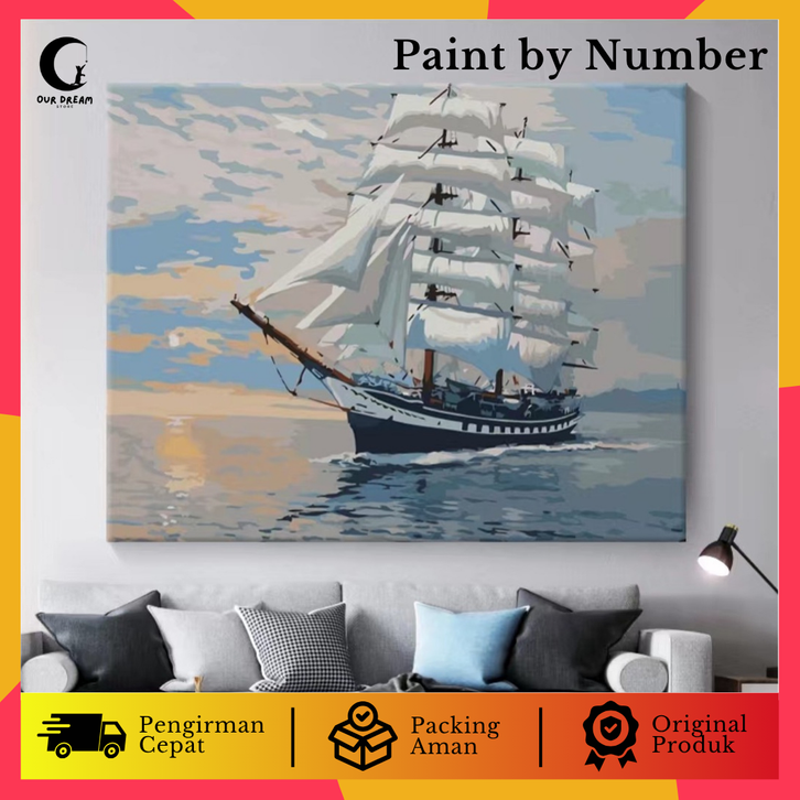 SET PERALATAN MELUKIS GAMBAR DENGAN ANGKA DIY PAINTING CANVAS PAINT BY NUMBER KIT UKURAN 40X50CM