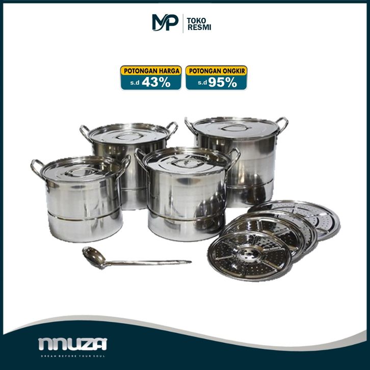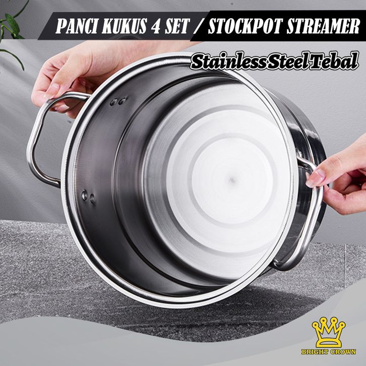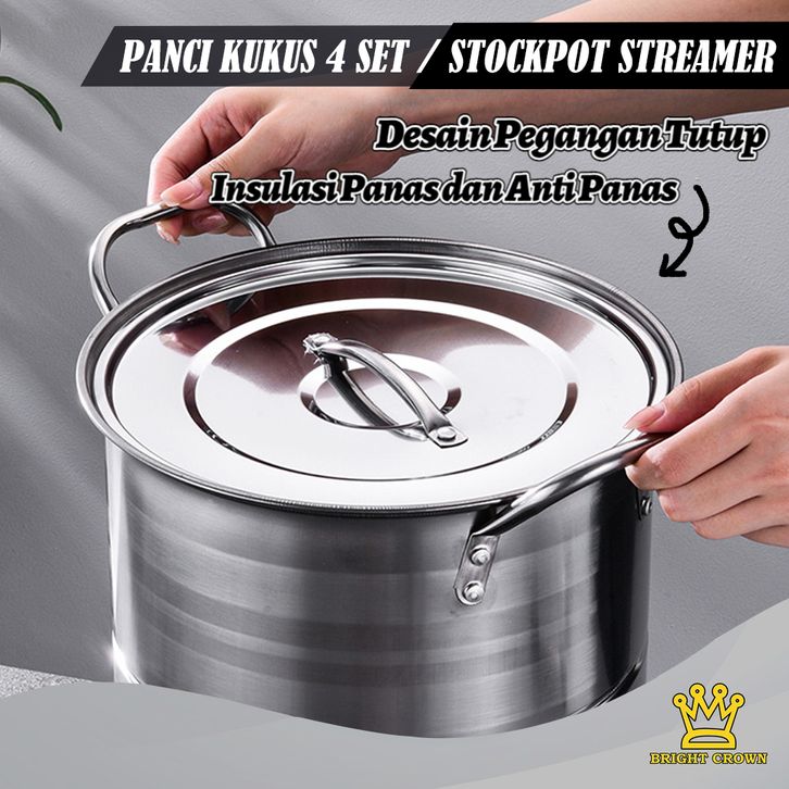 [[ PROMO PABRIK ]] Stockpot Streamer Panci Set Stainless 4 set + Centong Sayur | FREE STEAMER/Dandang Nasi Bright Crown