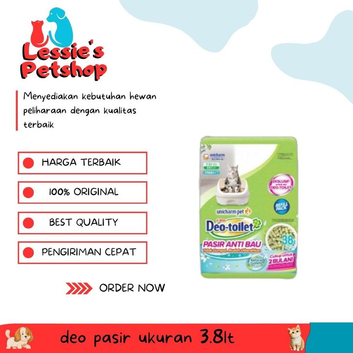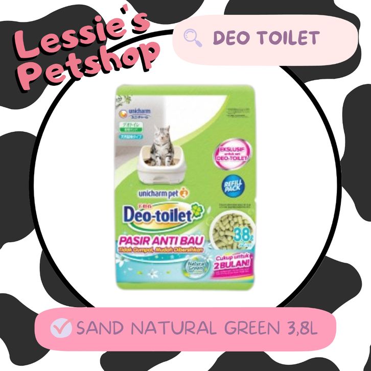 Unicharm Pet - Deo Toilet Pasir Kucing Anti Bau Natural Green Sand 3,8 Liter Ready stock