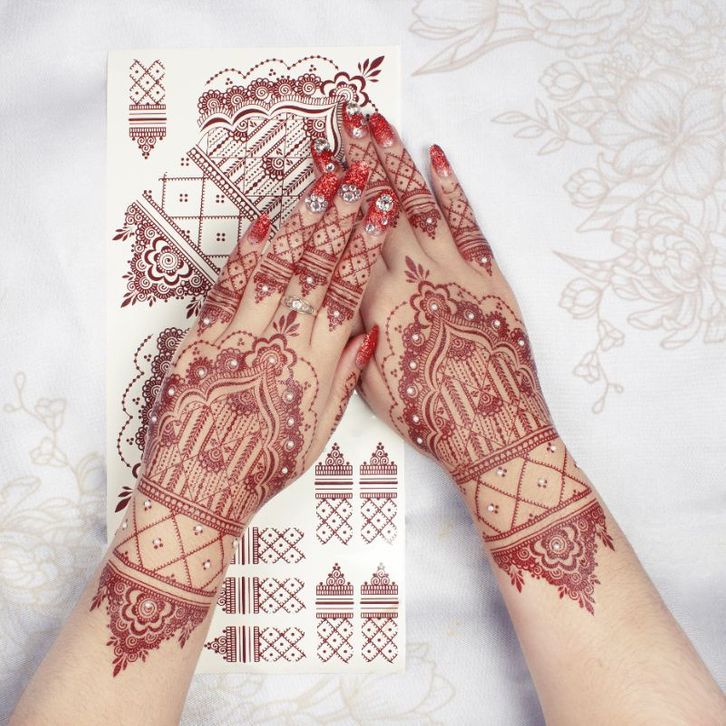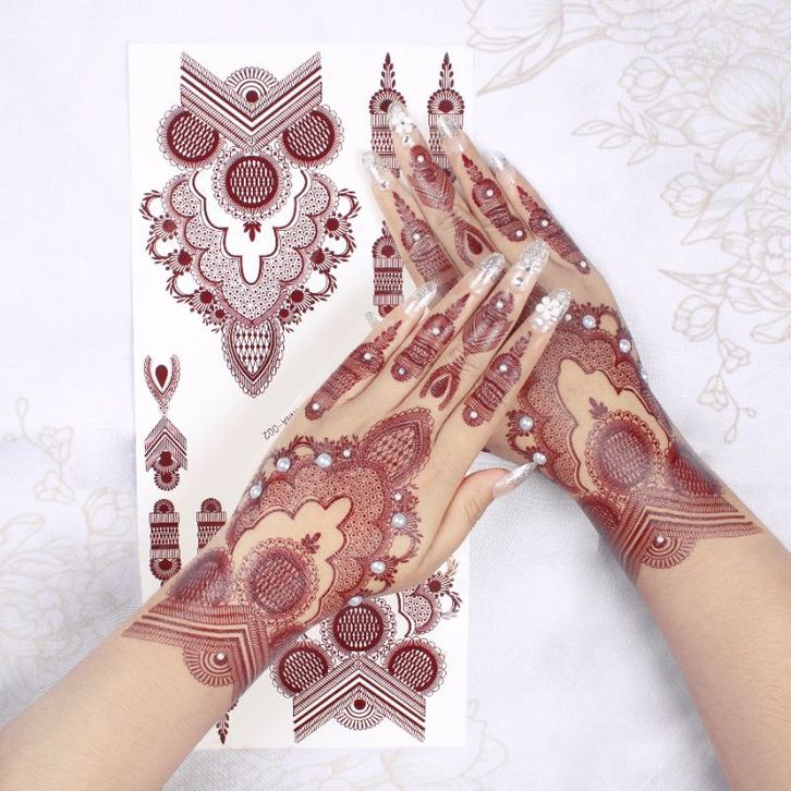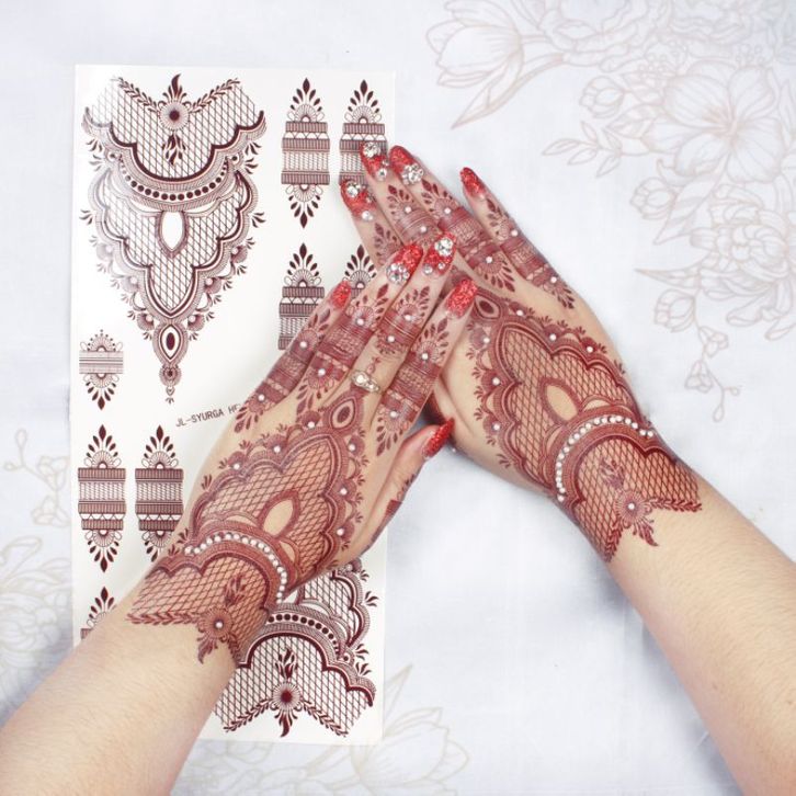 FRE (gliter+manik) HENA INSTAN FULL TANGAN KHUSUS UNTUK TANGAN BESAR (1 pcs bisa kanan kiri)