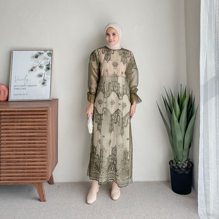 DRESS WANITA KEKINIAN BRUKAT KONDANGAN CEWEK TERBARU FASHIONABLE KOREA RAYA LEBARAN KONDANGAN WISUDA LAMARAN TERLARIS