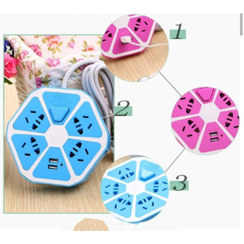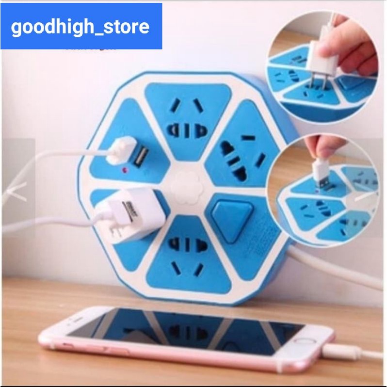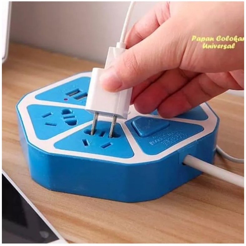 STOP KONTAK HEXAGON LISTRIK JERUK 2 USB PORT PROMO TERMURAH