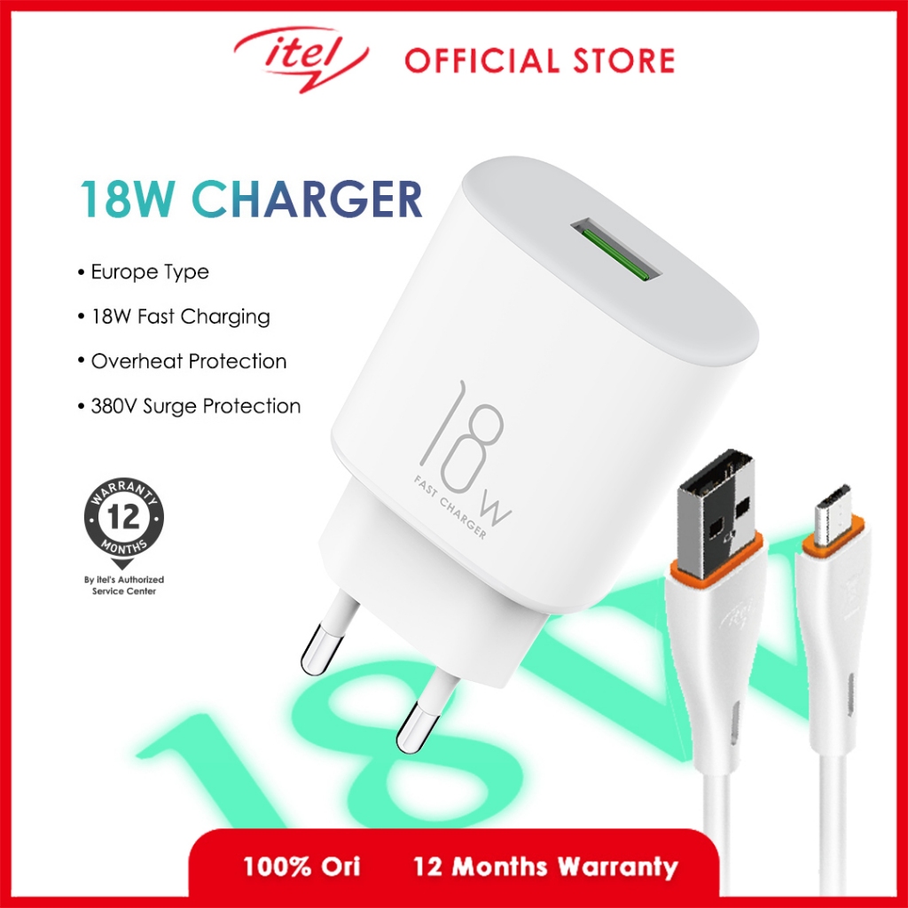 ITEL 18W KEPALA CHARGER KABEL MICRO FAST CHARGING ICW-182EM TRAVEL ADAPTER WHITE 2A KEPANJANGAN 1METER