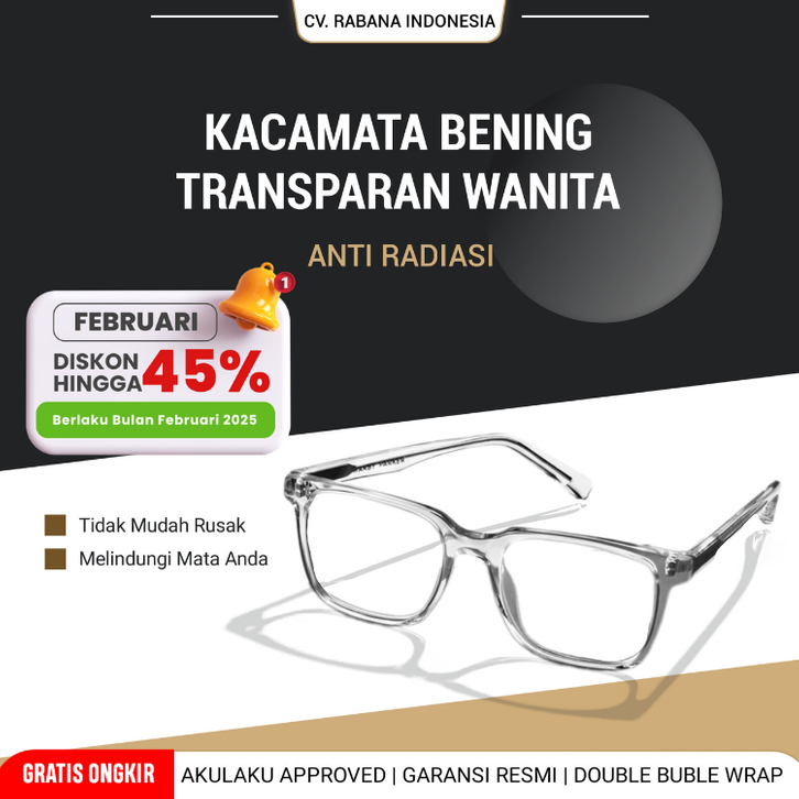 Kacamata Bening Transparan Wanita Korea Anti Radiasi Dekoratif Optik Fashion Retro Frame Aksesoris Lensa Pc