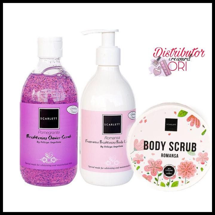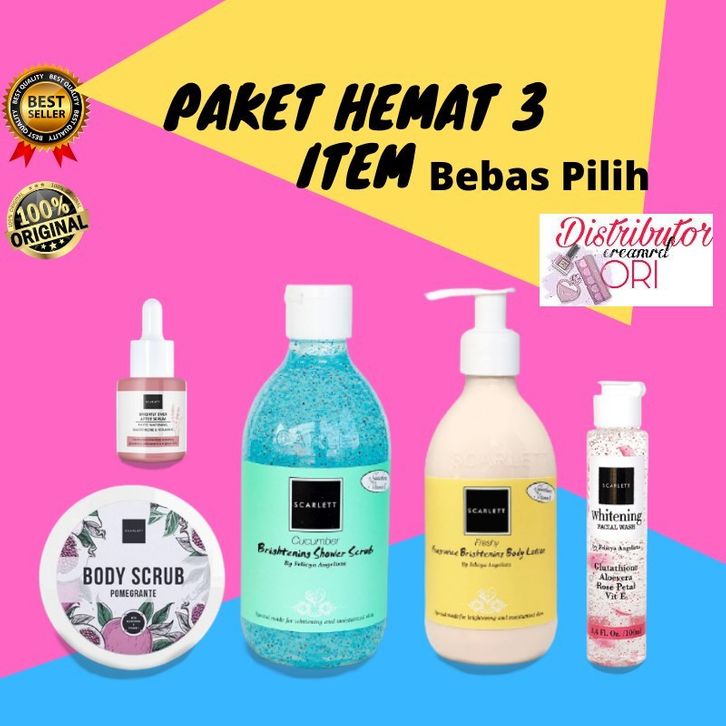PAKET ISI 3 SCARLETT WHITENING / face skincare ORIGINAL LOTION SCRUB SHOWER LULUR SERUM