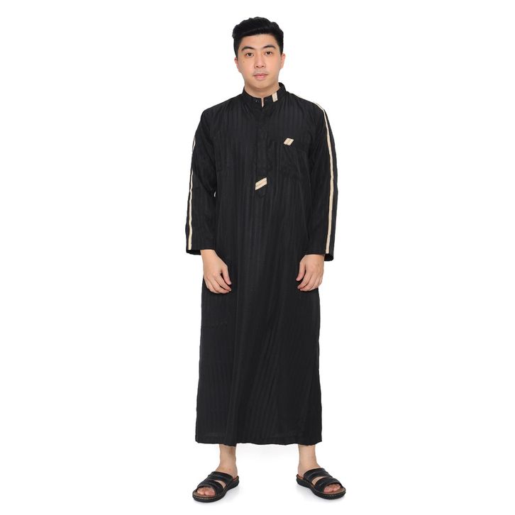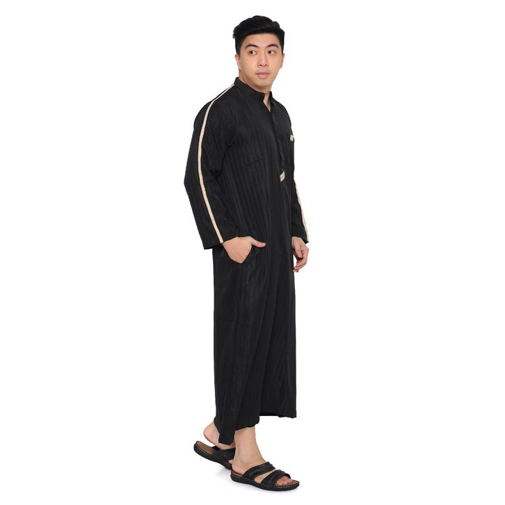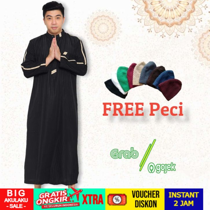 PROMO TERMURAH Jubah Gamis Pria Dewasa Panjang Putih Hitam Lis B05 FREE PECI KUALITAS PREMIUM