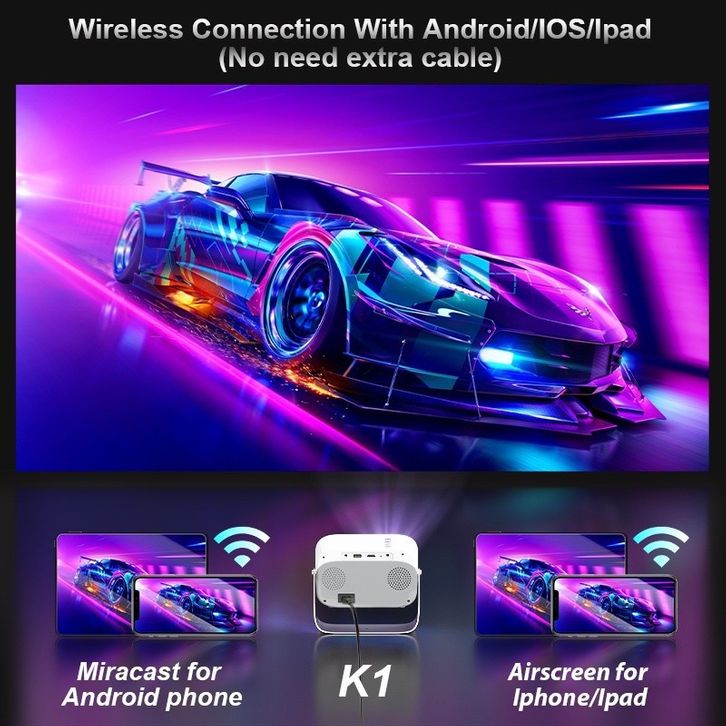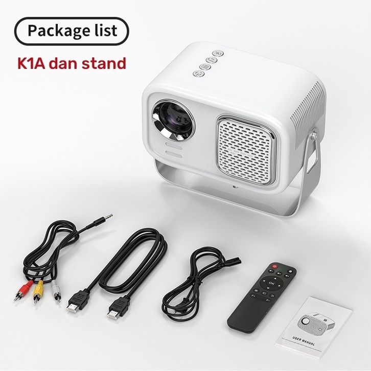 QIAOLET Proyektor 6000 Lumens Portable Projector Android 9.0 K1A Proyektor Mini Dukungan Untuk Terhubung Ke Laptop