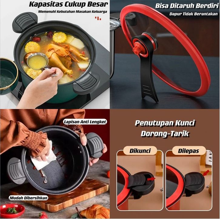Panci Presto 12 Liter HC Panci Presto Pelunak 4, 8, 12 Liter Panci Presto Kualitas Terbaik Panci Pelunak Daging Terlaris