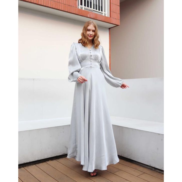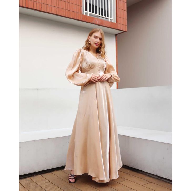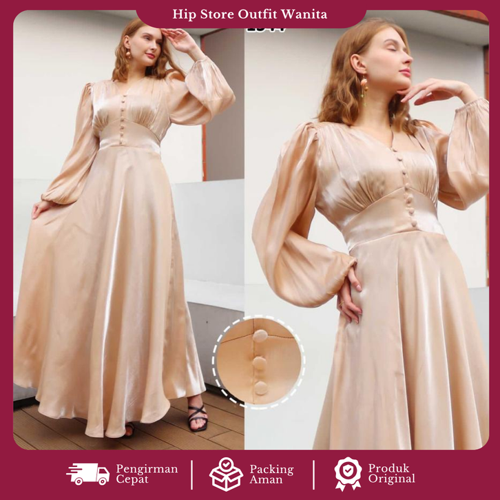 DRESS SHIMMER WANITA BAJU LEBARAN KEKINIAN GAMIS TANGAN BALON CANTIK BAJU KASUAL WANITA MODEL TERBARU