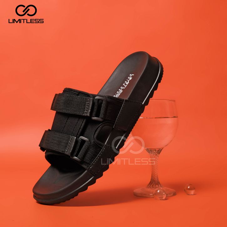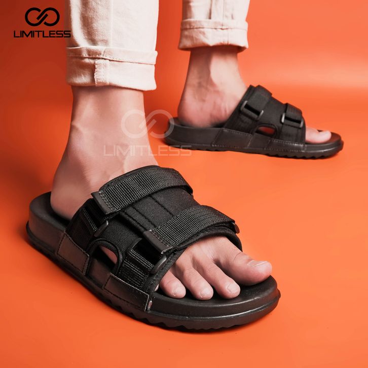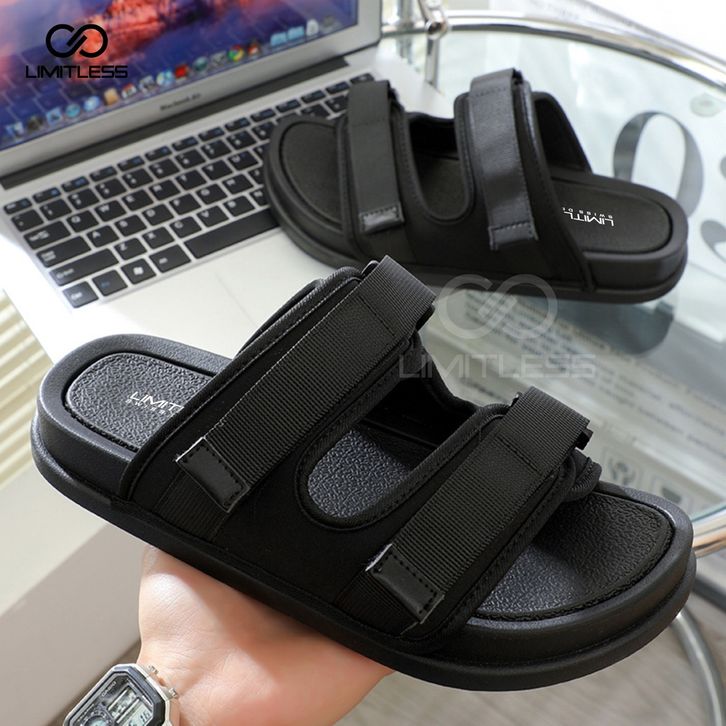 SANDAL PRIA SLIDE KASUAL ANTI SLIP STYLISH KEKINIAN FULL BLACK SENDAL SLIP ON COWOK DEWASA CASUAL RINGAN EMPUK SELOP TER