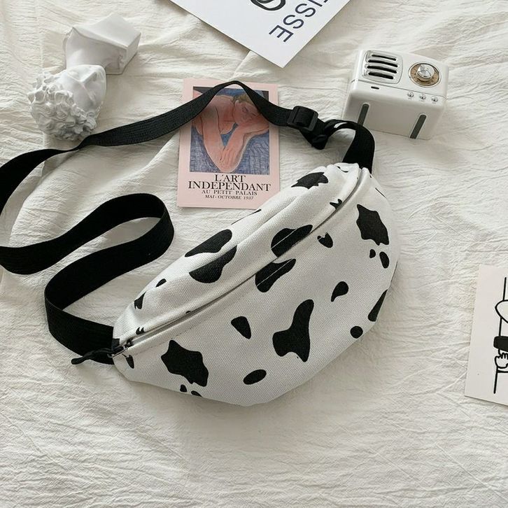 WAISTBAG Tas Bahu / Selempang Bahan Kanvas Desain Sapi Gaya Korea Untuk Wanita