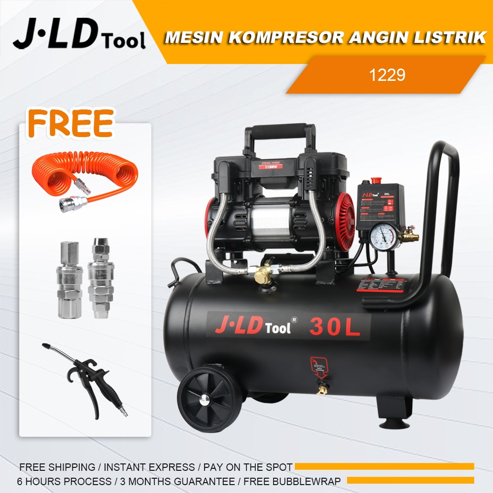 Mesin Kompresor Angin Listrik 30L 8bar Tanpa Oli 1100W Full Sets