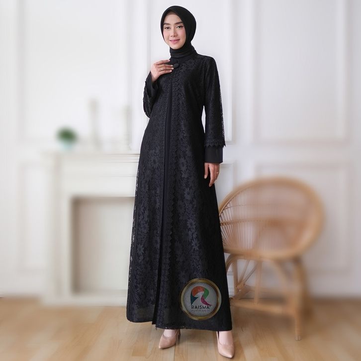 Gamis hitam wanita motif full brokat ricca dress Wanita Muslim Terbaru