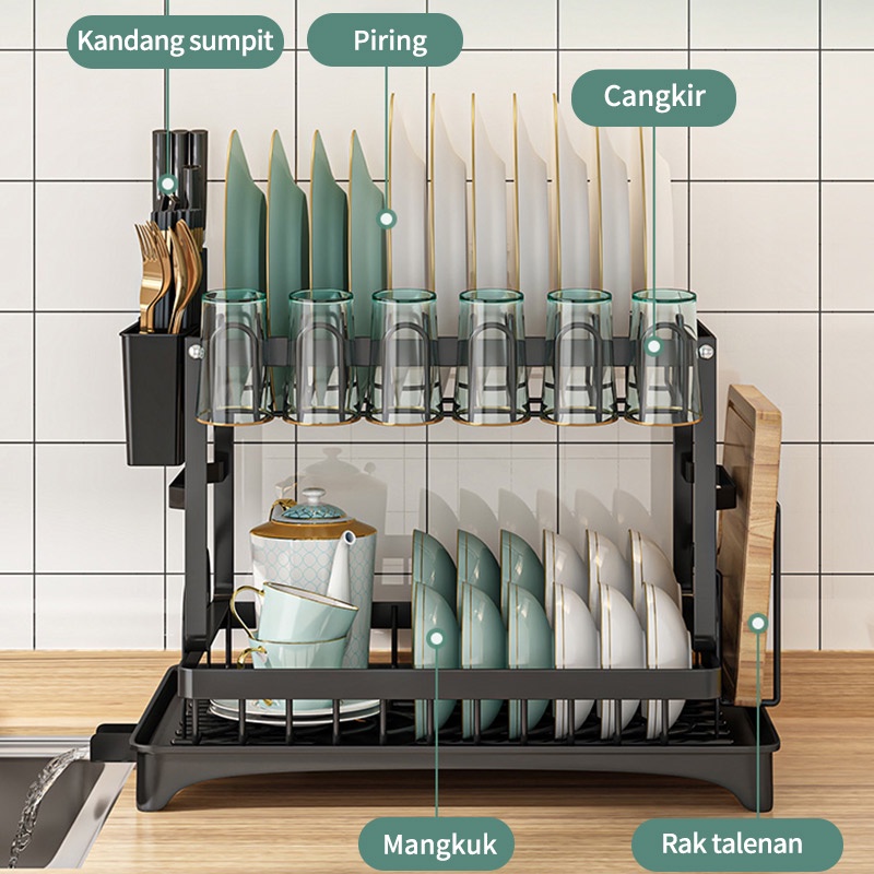 RAK PIRING DAPUR STAINLESS STEEL PENYIMPANAN RAK PENGERING PIRING RAK MANGKUK PIRING