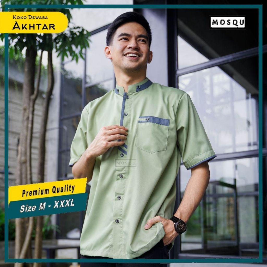 MOSQU AKHTAR BAJU KOKO PRIA DEWASA LENGAN PENDEK KEMEJA KOKO SIZE S - 4XL