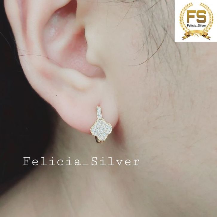 Anting Perhiasan Wanita ANTING peraak ASLI SILVER WANITA 925 LAPIS mas M0DEEL JEPIT BUNGA permaatta+permaatta 1BARIS -