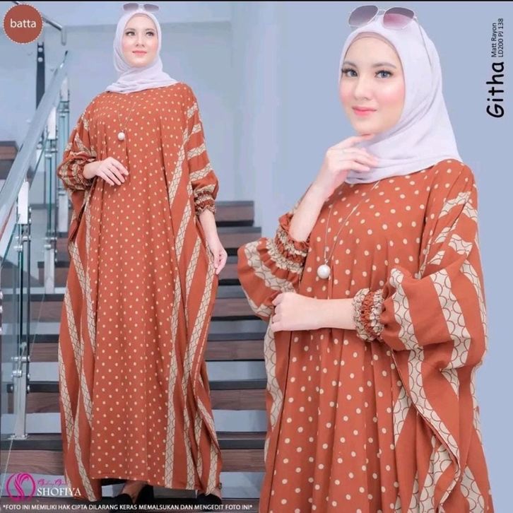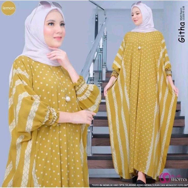 Kaftan Lebaran Anggi Home Kaftan Rayon Super Jumbo XXXL Busui Resleting Motif Polkadot / Kaftan Wanita / Gamis Arabian