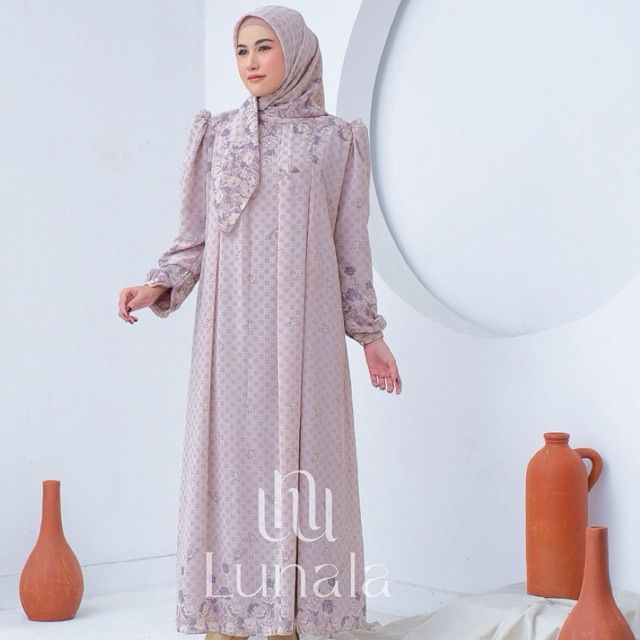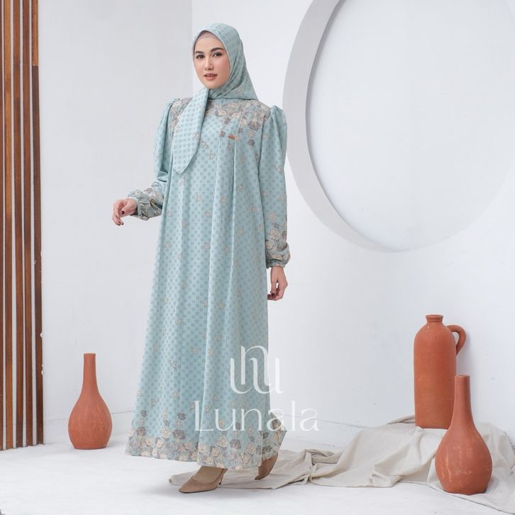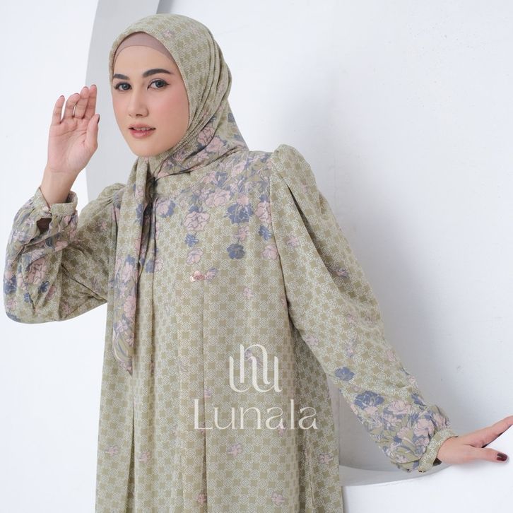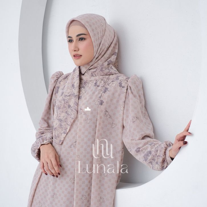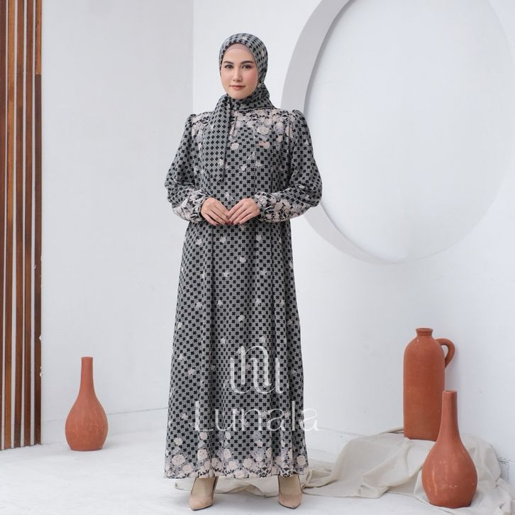 Lunala - Dress Gamis Muslim Zalina Set Hijab Ceruty Babydoll Kondangan Tangan Balon