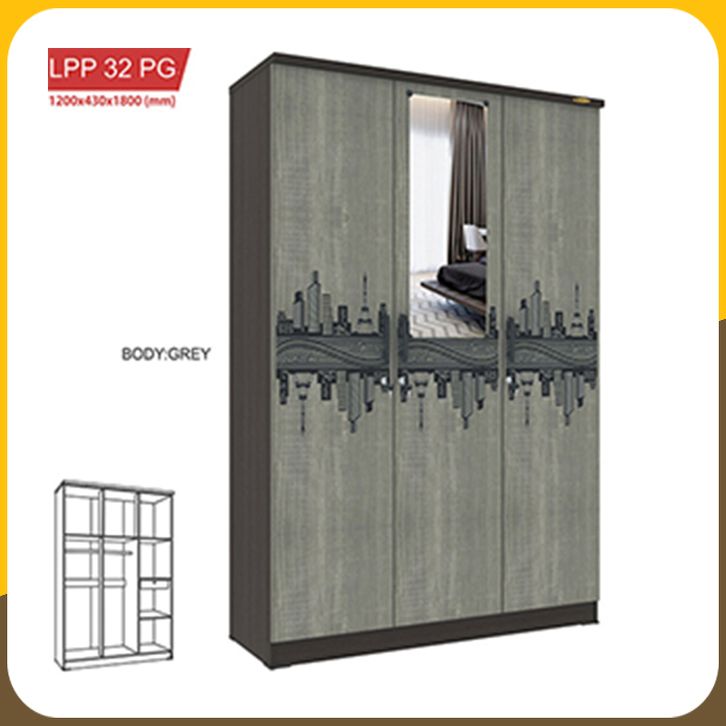 PanenRaya Lemari Pakaian 3 Pintu ROMARO LPP32PG Walnut 120x43x180