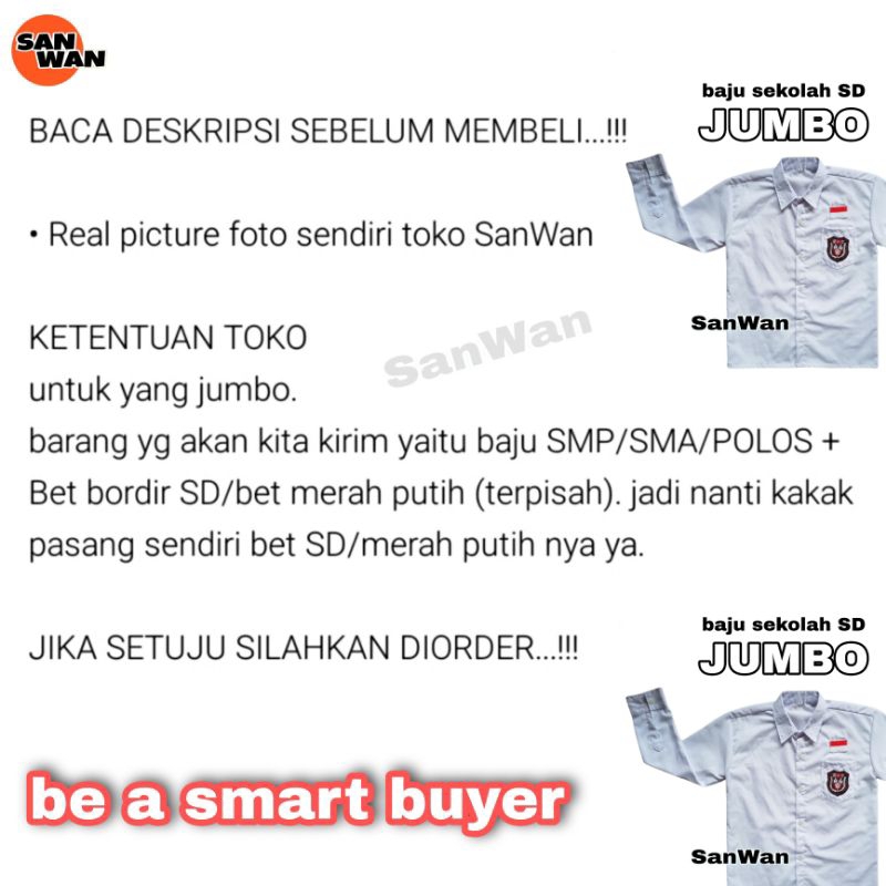 BAJU SERAGAM SEKOLAH SD JUMBO PUTIH LENGAN PANJANG