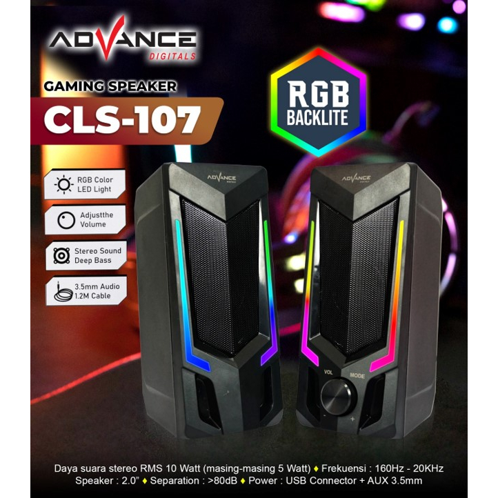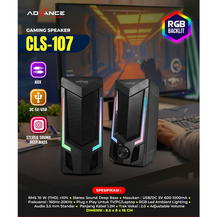 speaker komputer pc mini murah spiker bas karaoke Speaker Komputer Advance CLS-107 / CLS-107BT Bluetooth RGB Super Bass