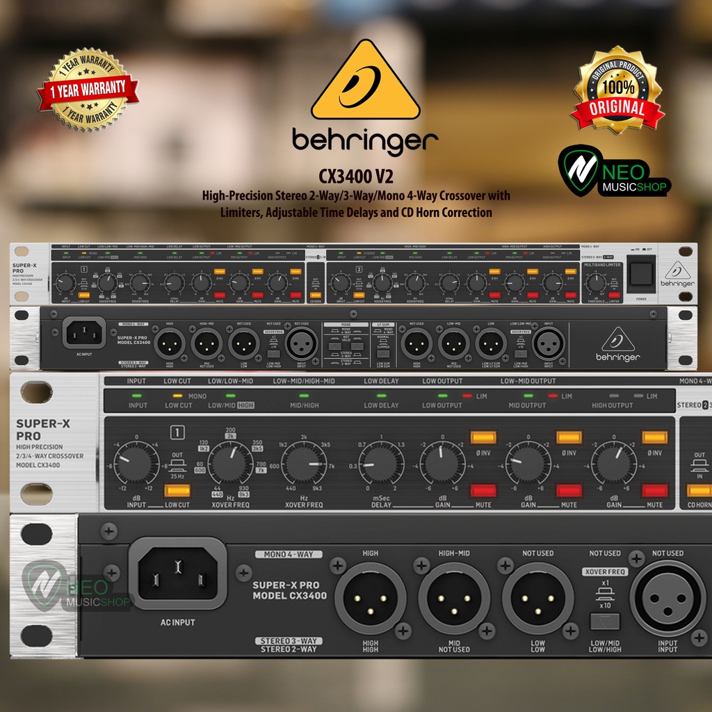 BEHRINGER CX3400 V2 STEREO 2-WAY 3-WAY /MONO 4-WAY CROSSOVER W LIMITER