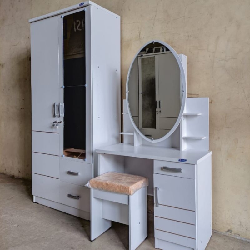 LEMARI PAKAIAN 2 PINTU DAN MEJA RIAS - LEMARI 2 PINTU KACA PANJANG LACI MEJA RIAS TERLARIS BEKASI BOGOR TANGERANG