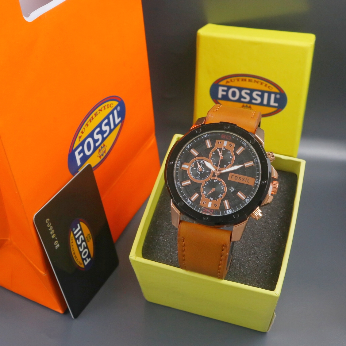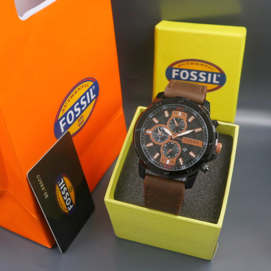 GRATIS ONGKIR - Jam Tangan Pria FOSSIL F9105Y Tanggal Tali Kulit Free Box Original , Kartu Garansi , Paperbag & Baterai