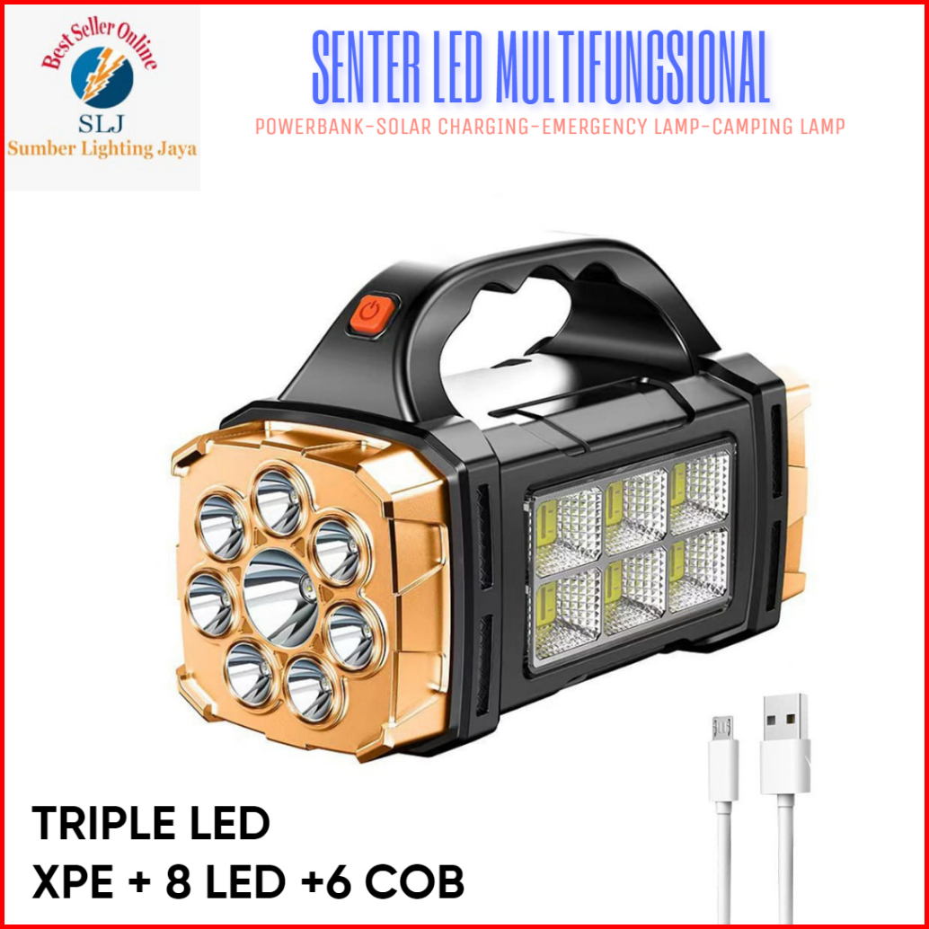 Senter Led Xpe 8 Led 6cob Multifungsi Powerbank Senter Cas Usb
