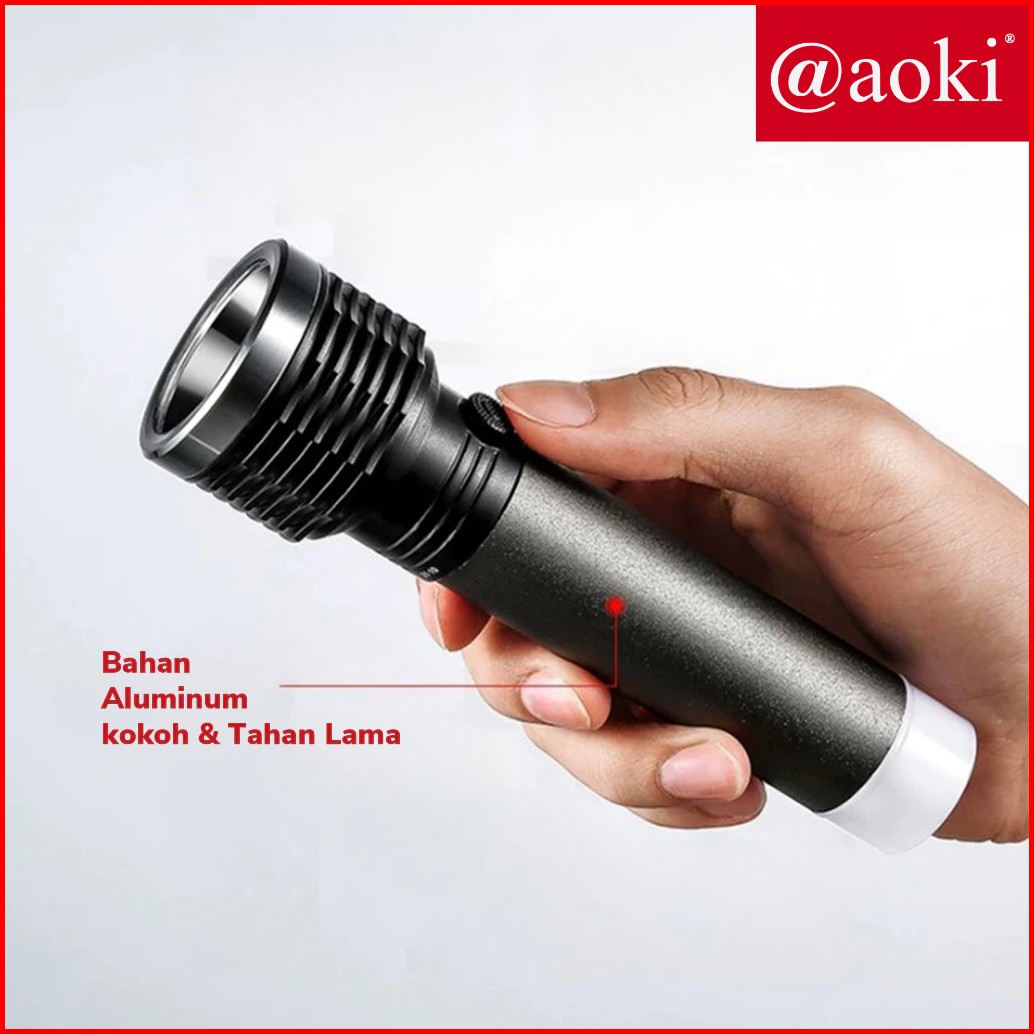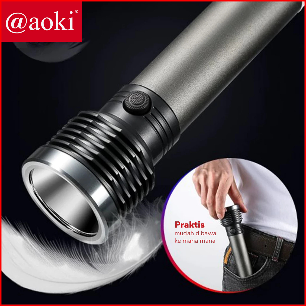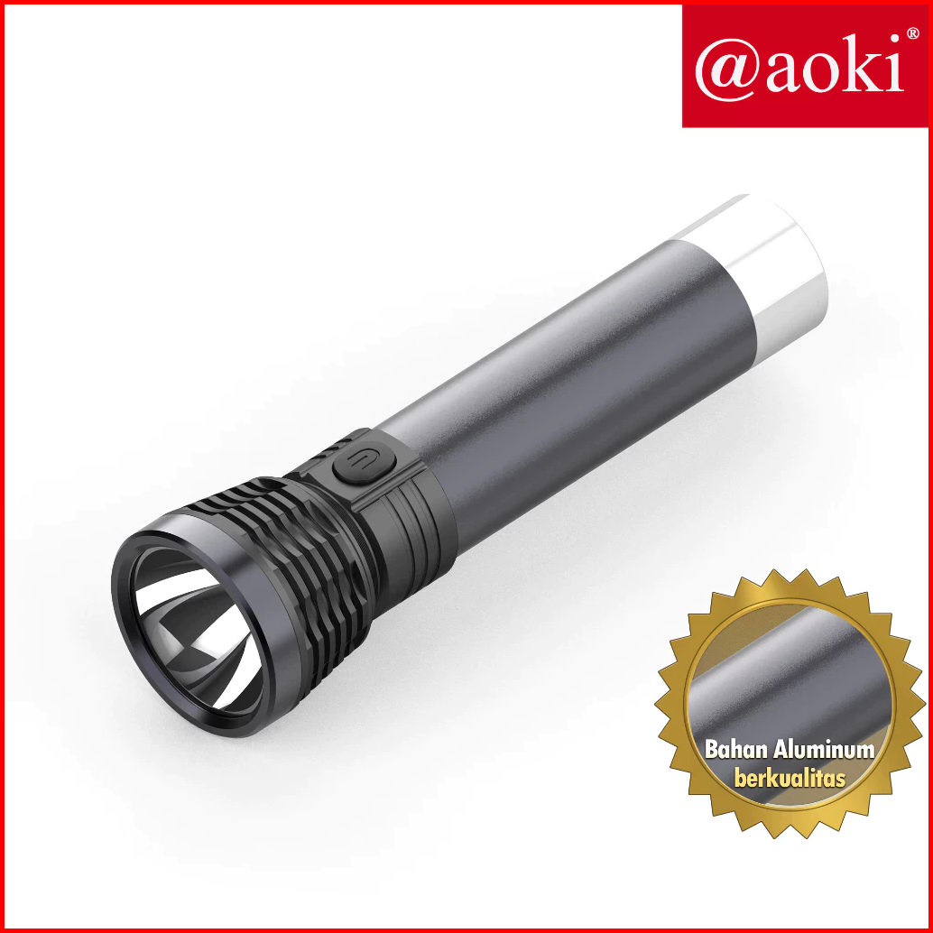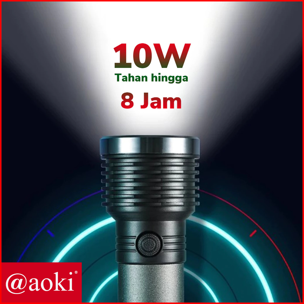 Aoki Senter Tangan Aluminum 10w 4smd Terang Tahan Lama Super Led Rechargeabel Dapat Diisi Ulang Lampu Darurat