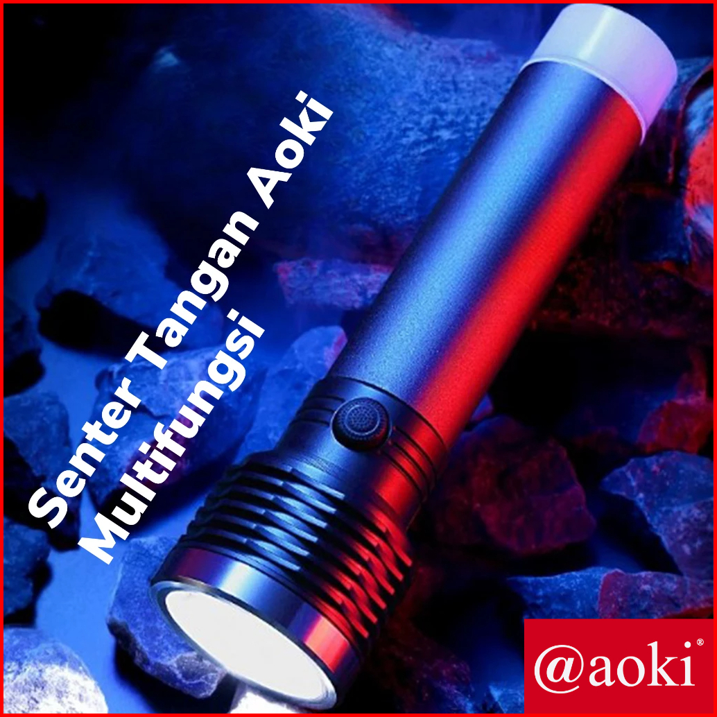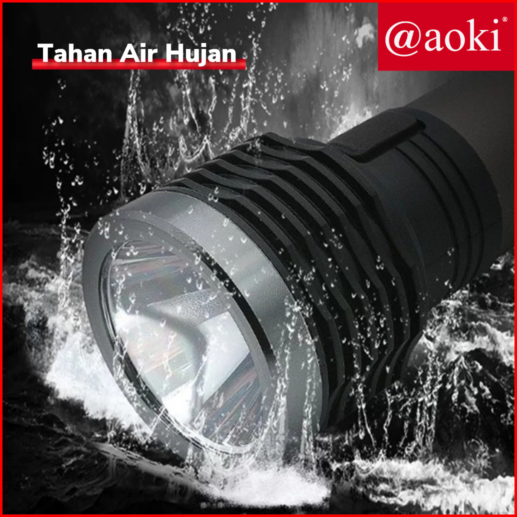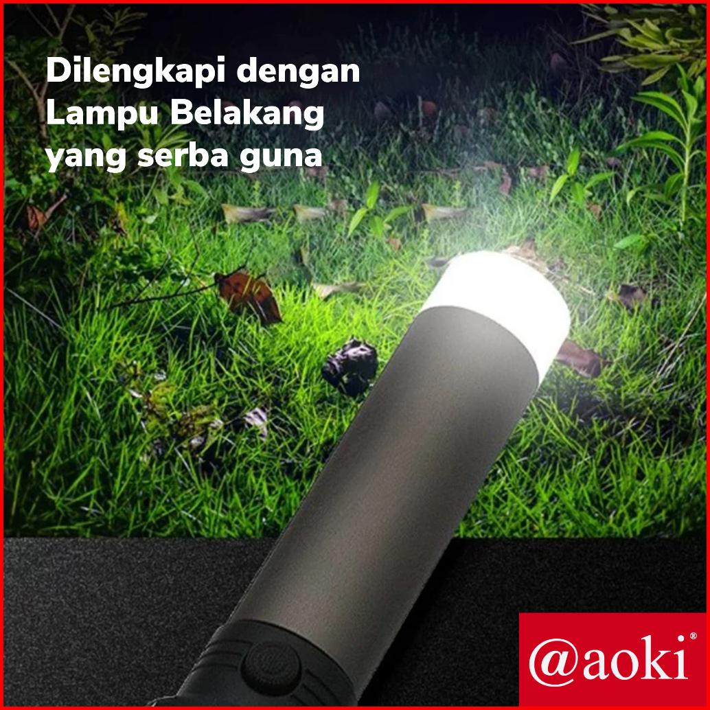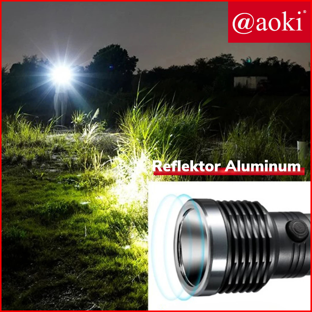 Aoki Senter Tangan Aluminum 10w 4smd Terang Tahan Lama Super Led Rechargeabel Dapat Diisi Ulang Lampu Darurat